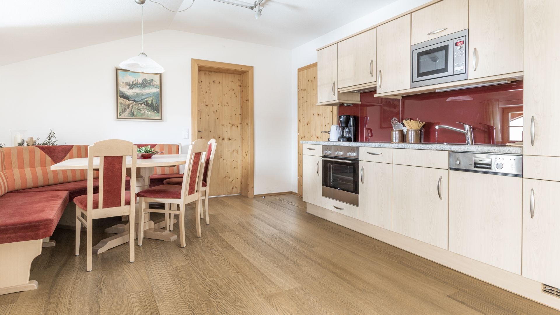 In unserer Ferienwohnung für 6–8 Personen finden Sie alles, was es für einen sorgenfreien Aufenthalt braucht. Von der gemütlichen Essecke bis zur gut ausgestatteten Küche ist an alles gedacht – damit Sie den Alltag hinter sich lassen und Ihren Urlaub in vollen Zügen genießen können.